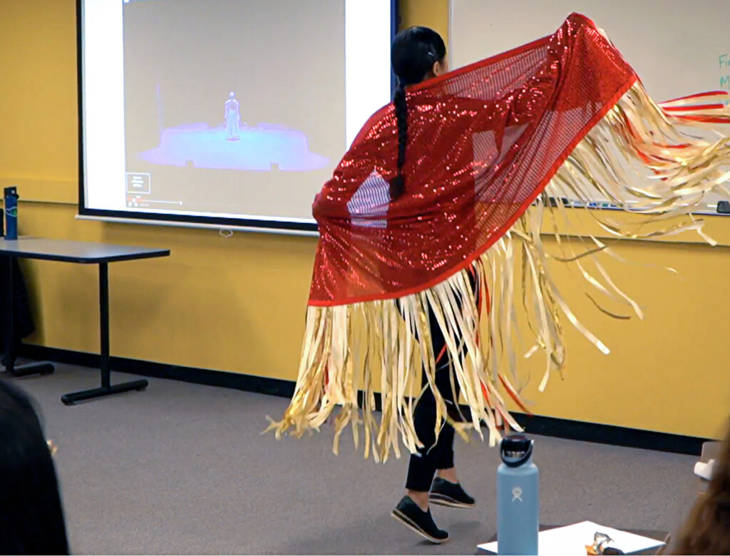 When Macias teaches, she incorporates experiential learning and draws from Dr. Betty Bastien. “There is the concept that knowledge is living, and learning involves making knowledge part of the body,” says Macias. “During my first quarter teaching dance history, as someone who is navigating my own relationship to ideas about history and what traditions are upheld, there were times when I asked students to turn to their dancing and explore a text or topic through movement. For one activity, students worked in groups and created a movement in response to a given section of the reading. They shared the movement with the class and taught each other from it.”