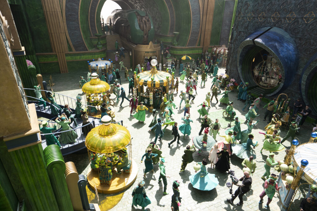 Scott notes that his experience choreographing hip hop informs everything he does, including Wicked. “What I love about hip hop is it’s birthed out of BIPOC communities, and it came from a place of oppression, so I think when you’re dealing with representing a world on film, it’s very powerful to be able to pull from those styles…it brings a reality to something even as larger-than-life and surreal as Oz.” For the movie, he integrated numerous dance styles for the sake of creating movement that was relatable. Then, to prevent the choreography from feeling overly familiar, he added small twists to create an “Ozian” feeling.