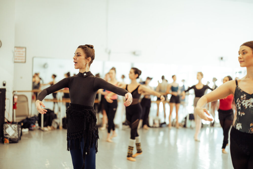 How can you shake up the classroom routine? Damast recommends having students improvise movement to a new spot in the room during the 16 counts between each side of a combination. You could also change the formation of a particular part of class, or have students face each other and mirror each other’s movement. Playing with spacing in the studio can enhance adaptability when it comes to staying in formation onstage.